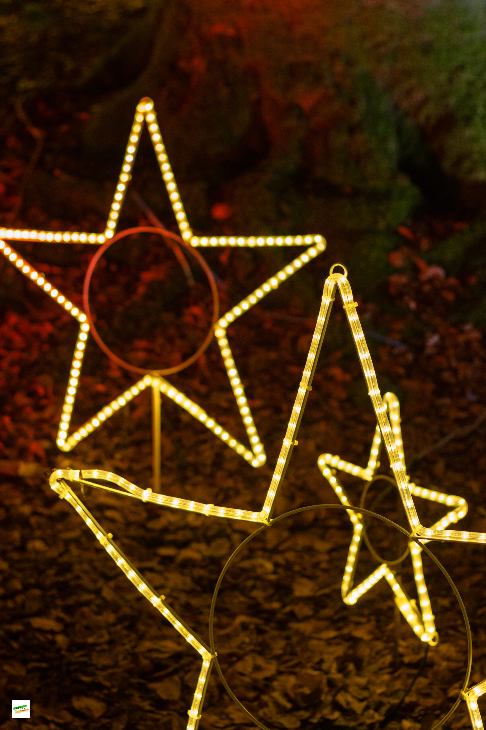 There were a lot of people and children there, which was to be expected, but still. The paths were wide enough, so no one stuck to us (except for that random kid who grabbed my jeans…). The background music was also quite loud at times, because the speakers were hung quite close to the path, it gave me a headache yay Buut we were lucky with the weather! You really won’t believe what a big deal it is, but it was supposed to rain and be windy a lot and in the end only a few drops fell down, the wind blew sometimes and the temperature stayed nice and warm. So it didn’t have a completely winter vibe, but the lights were divine!