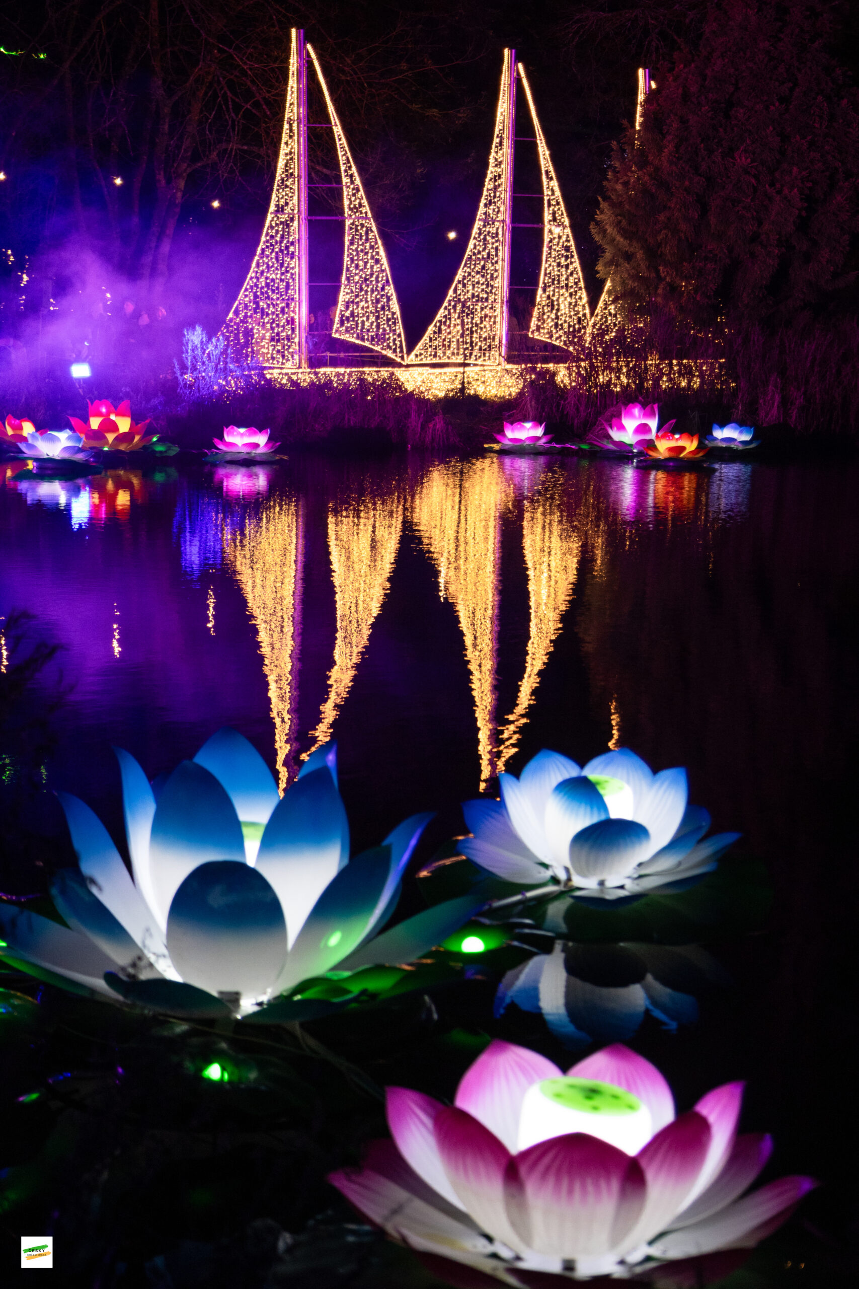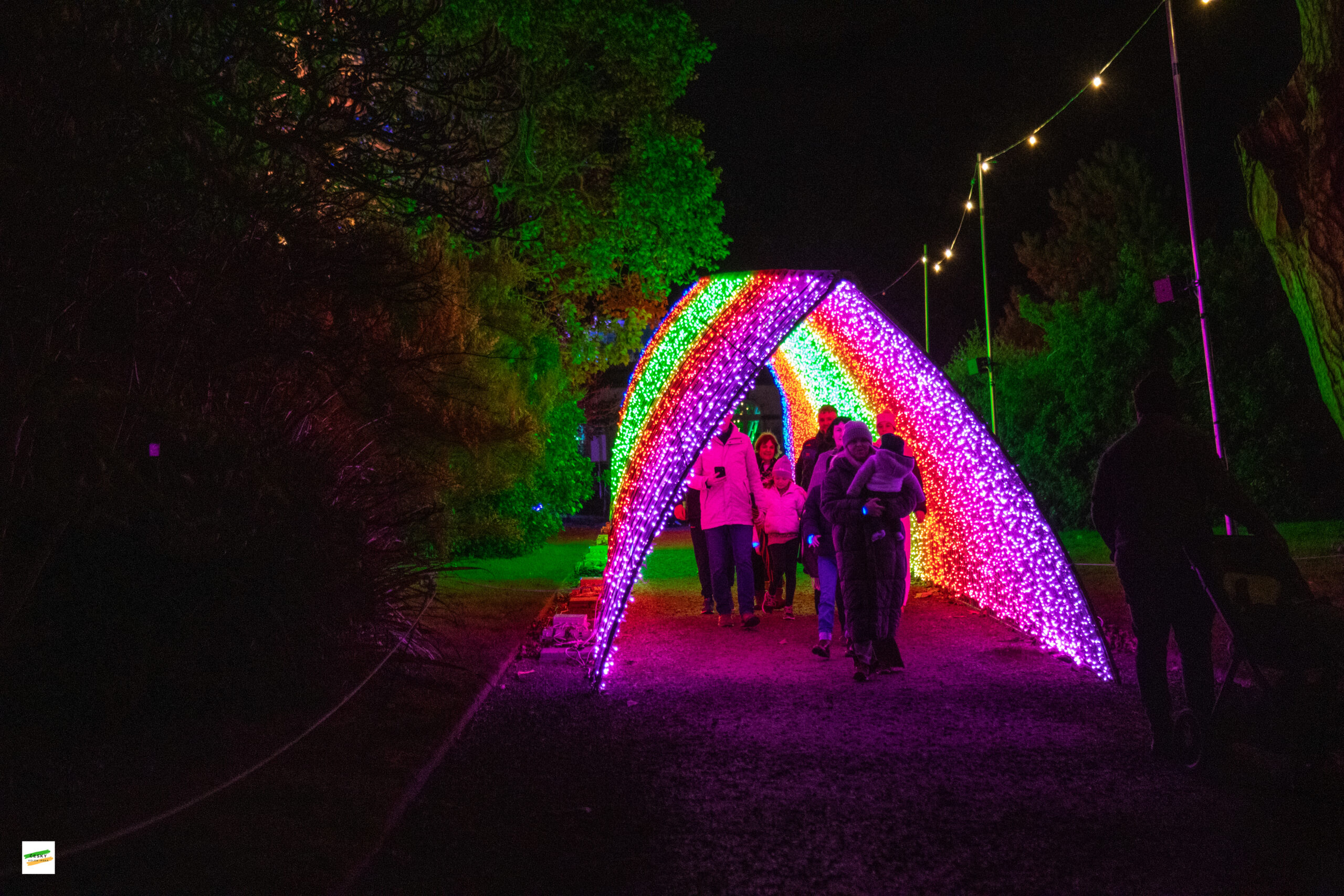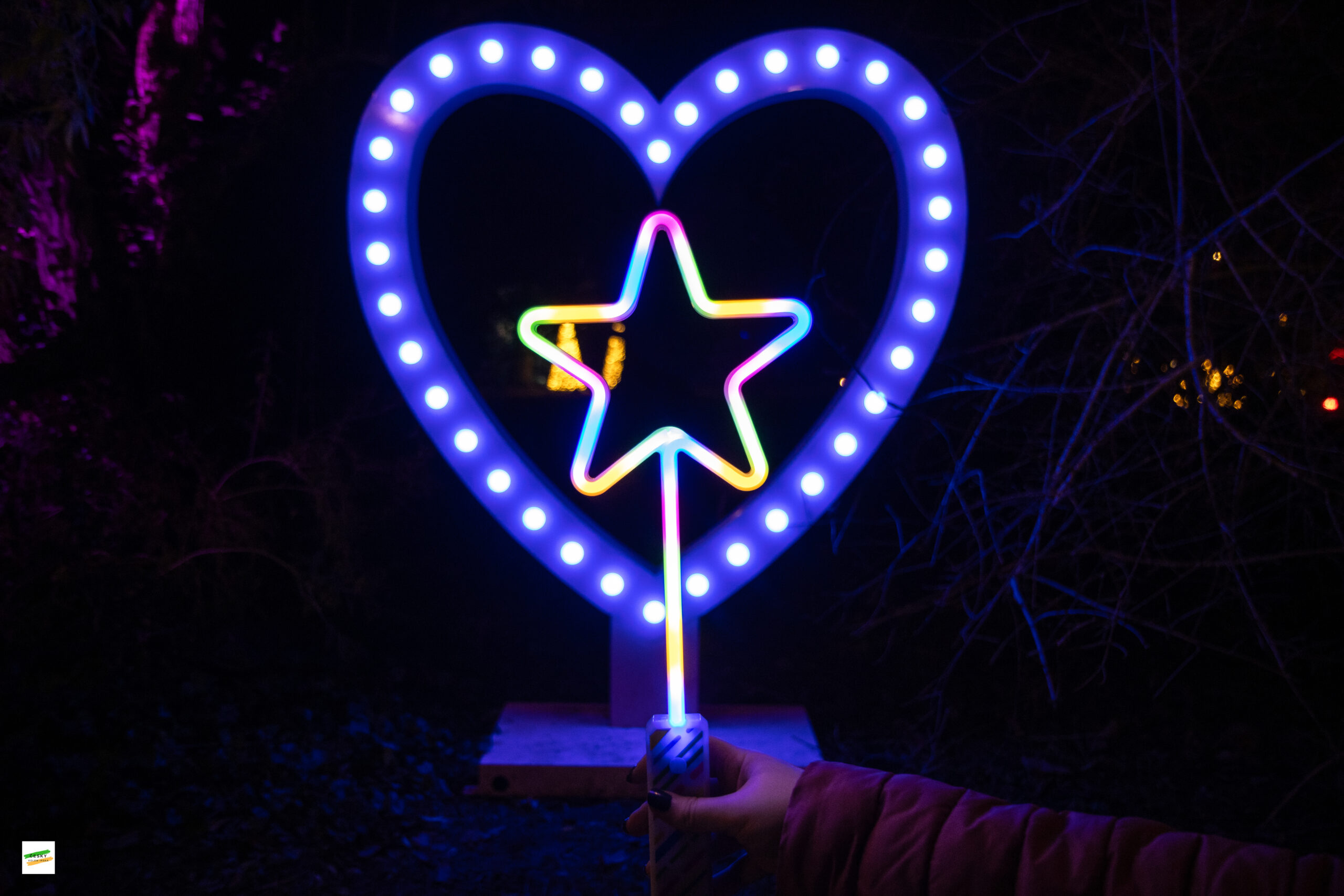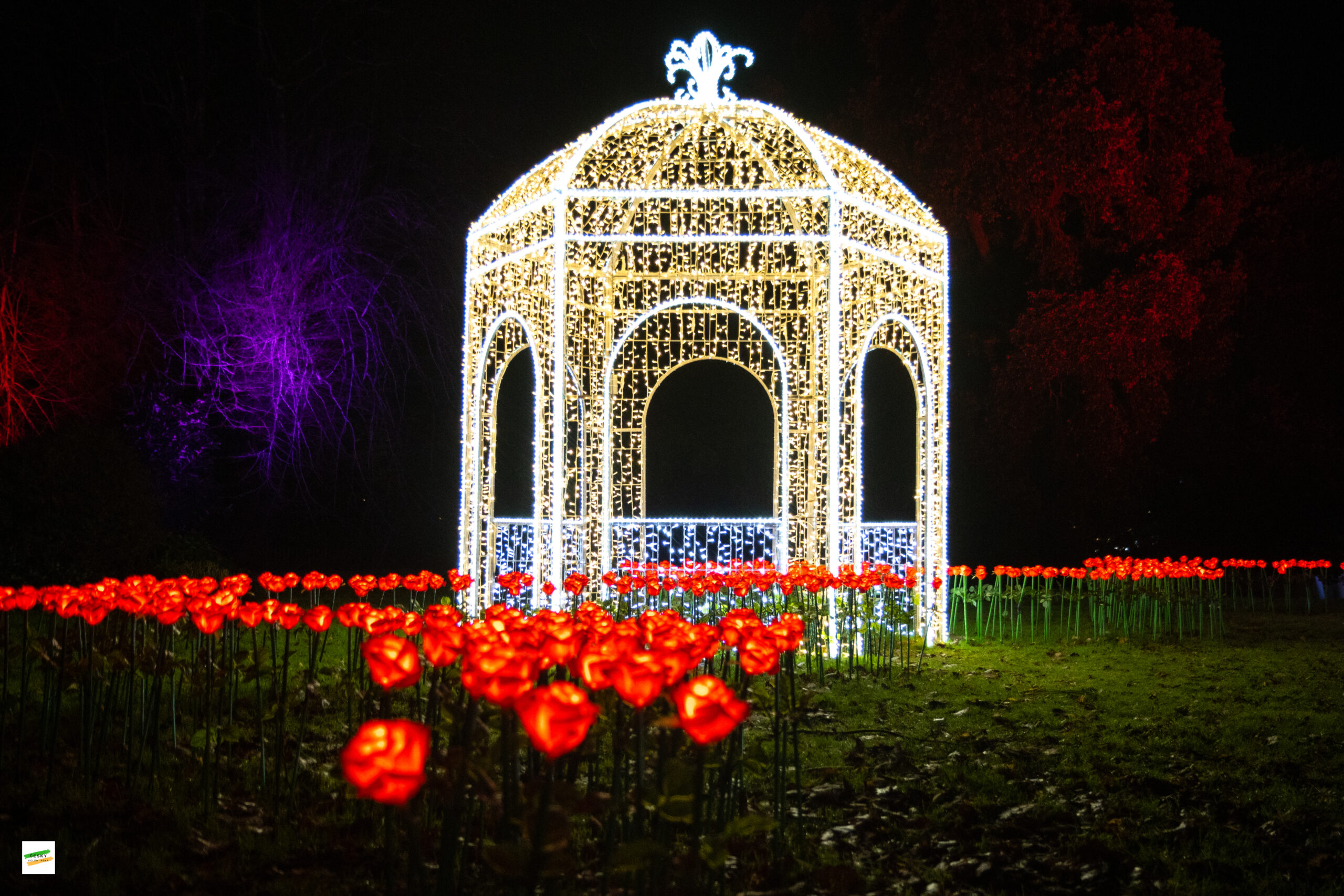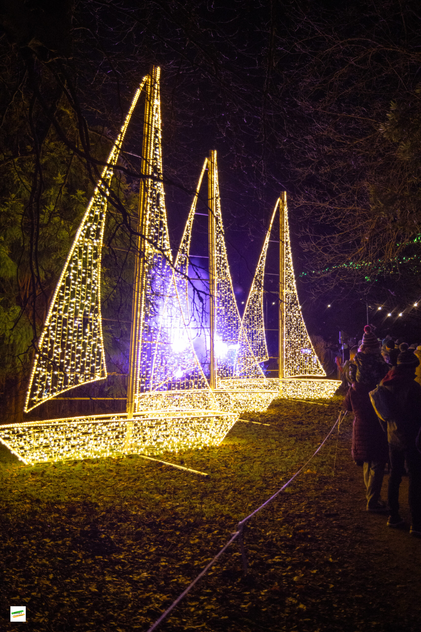 Wonderlights has been held at these locations since 2019 and always around Christmas, when the parks turn into glowing places. Just imagine the lights and illuminated trees and bushes, music everywhere and projections on buildings and the ground. I was captivated and so were my friends who went with me. In Fota, rainbow tunnels and giant glowing animals (deer, polar bears and others) were waiting for us, boats, snowflakes and koi fish were projected on the ground. They also had an aquatic section and a place made for lovers (just hearts and literally a giant sign saying “love”). What I liked the most was that they put fake glowing plastic water lilies on the pond, boats behind them and pumped fog into it. It was truly magical.