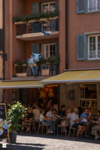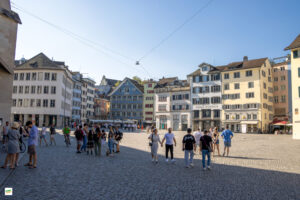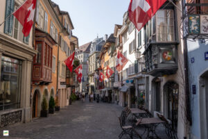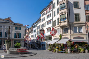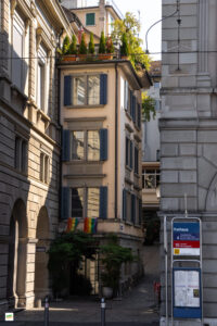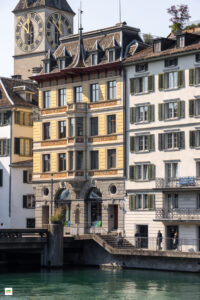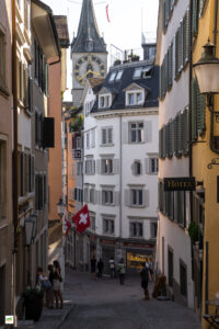 In addition to the churches, I also recommend a stop at Augustinergasse – another tourist spot. It is a street with very nice historical architecture and lots of Swiss flags. And the caption on Zurich’s official tourist website got me: “With many well-preserved, colorfully painted bay windows, it provides an insight into the history of the city. In addition to better light, the bay windows provided above all the possibility to see who was at the door. They were never built directly above the entrance door, but instead always slightly offset. As a result, residents could already spot unwanted guests from afar and avoid them in an elegant manner when necessary.” That’s totally me at home leaning out the window above the front door to see if I should go down the stairs hahaha