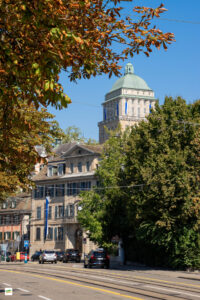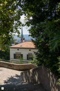 To get to the view, you have to walk past the university itself to ETH Zürich. In front of this building is the so-called Polyterrasse and from there you can see the view. At the time of my visit, more than half of it was overgrown with bushes and trees, so one could only see the left part of the city and the view beyond. However, it was more than enough. In addition, if you are lucky with the weather, unlike me, you can even see part of the Alps (they can be seen better from elsewhere, but I will get to that later).