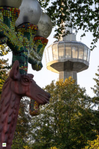 Okay, and now the cherry on the top of Zurich: Uetliberg. View of the entire city AND the Alps! The observatory (and the restaurant, of course) is located on a hill above Zurich and can be seen beautifully from the old town. It wouldn’t be Switzerland if you didn’t have a way to get there. The s-bahn line S10 from the main train station took me to Uetliberg station in the evening. The journey took about 20 minutes and offered beautiful views of the city, surroundings and nature. In addition, the s-bahn itself was beautifully clean! I’m used to the German ones and they just aren’t that clean (and DART in Ireland isn’t any better). It’s about a 10-minute walk uphill from the station to the lookout, which wasn’t exactly something I’d enjoy in this weather. There is a hotel and a restaurant on the lookout itself, and then you have two options: go up to the viewing tower (paid and there are only stairs), or walk around the place for free and see basically the same thing. Since I was dying (Even though the path to the lookout is nicely done, sometimes it was really too much. And I was completely done when I saw the guy who ran up it!) and the Alps were almost invisible anyway, I stayed on the ground and just looked around Zurich and the surrounding area. The view was divine, but of course it would be better if the Alps could be seen and the sunset was a beautiful orange. I know from a new German friend that the Alps can be seen beautifully from here (he showed me a photo). Maybe next time!