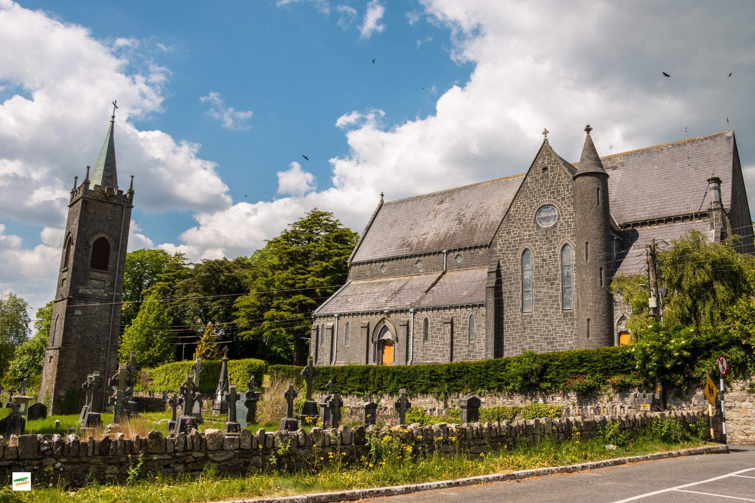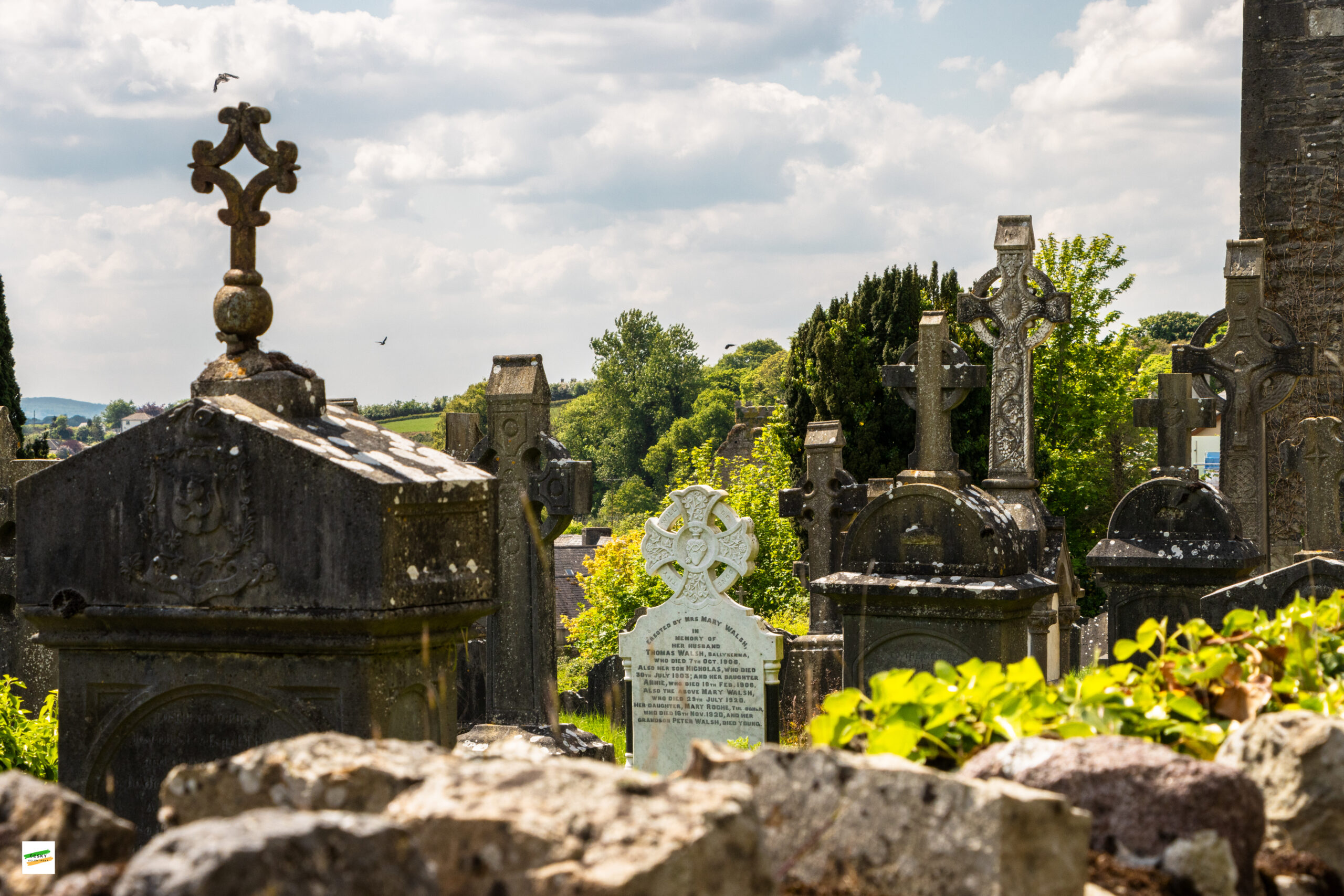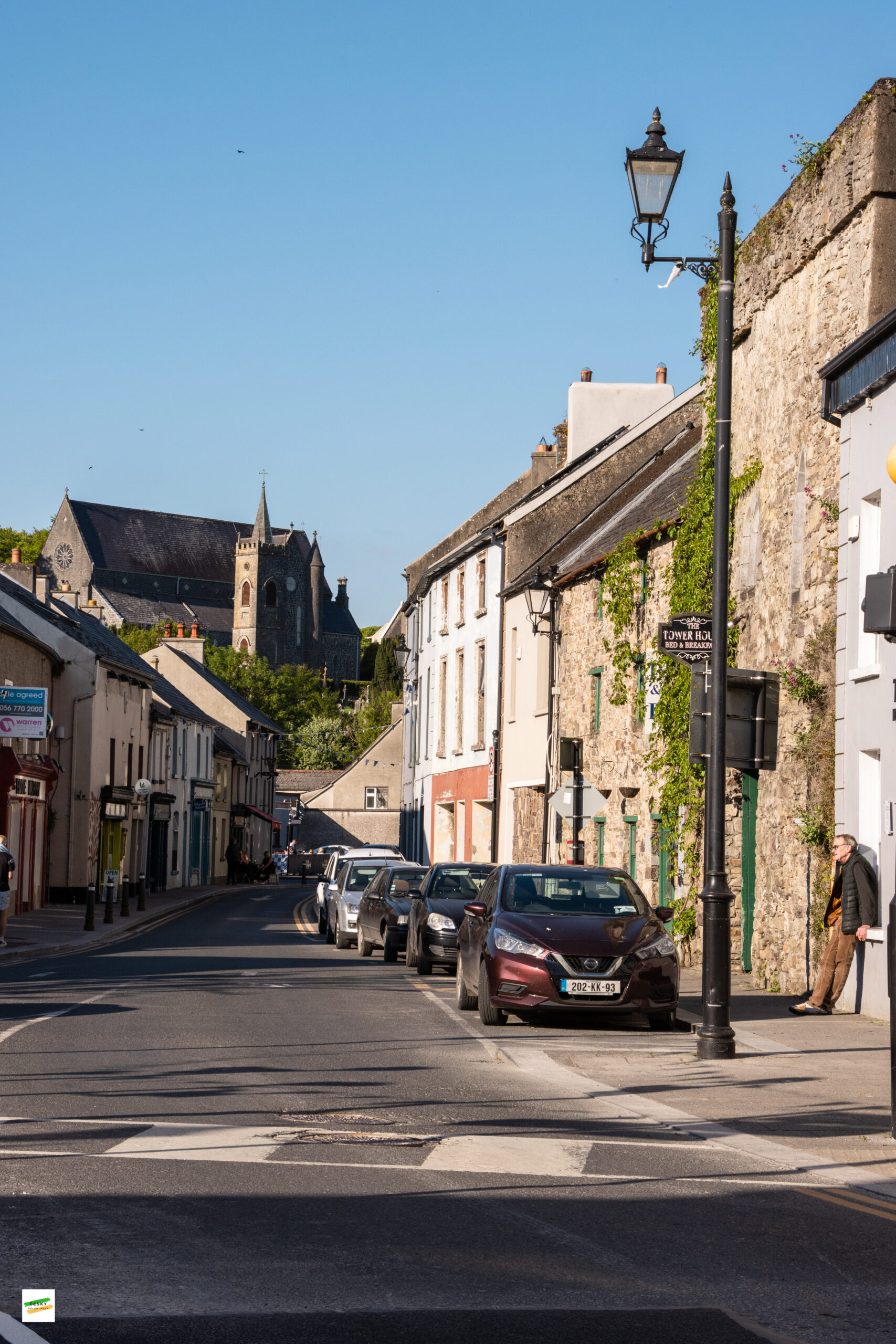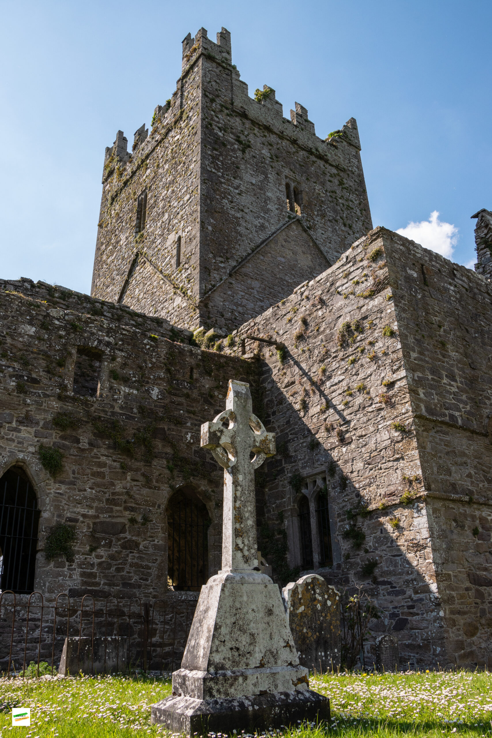 Right at the entrance to the village you can notice colorful buildings on both sides such as the Community Center or the Concert Hall. This path will take you straight to the center of Thomastown, where it is teeming with cafes and shops. At the end of the main road, behind a locked gate, is the first stop – the ruins of a church, probably. Even though this building is not open to the public, if you walk down this road to the other end and look back, it is beautifully highlighted by the shops and buildings around it. From here I headed to the Church Of The Assumption, not only because it is photogenic, but in front of it is an old tower and a cemetery with iconic Irish/Celtic crosses.