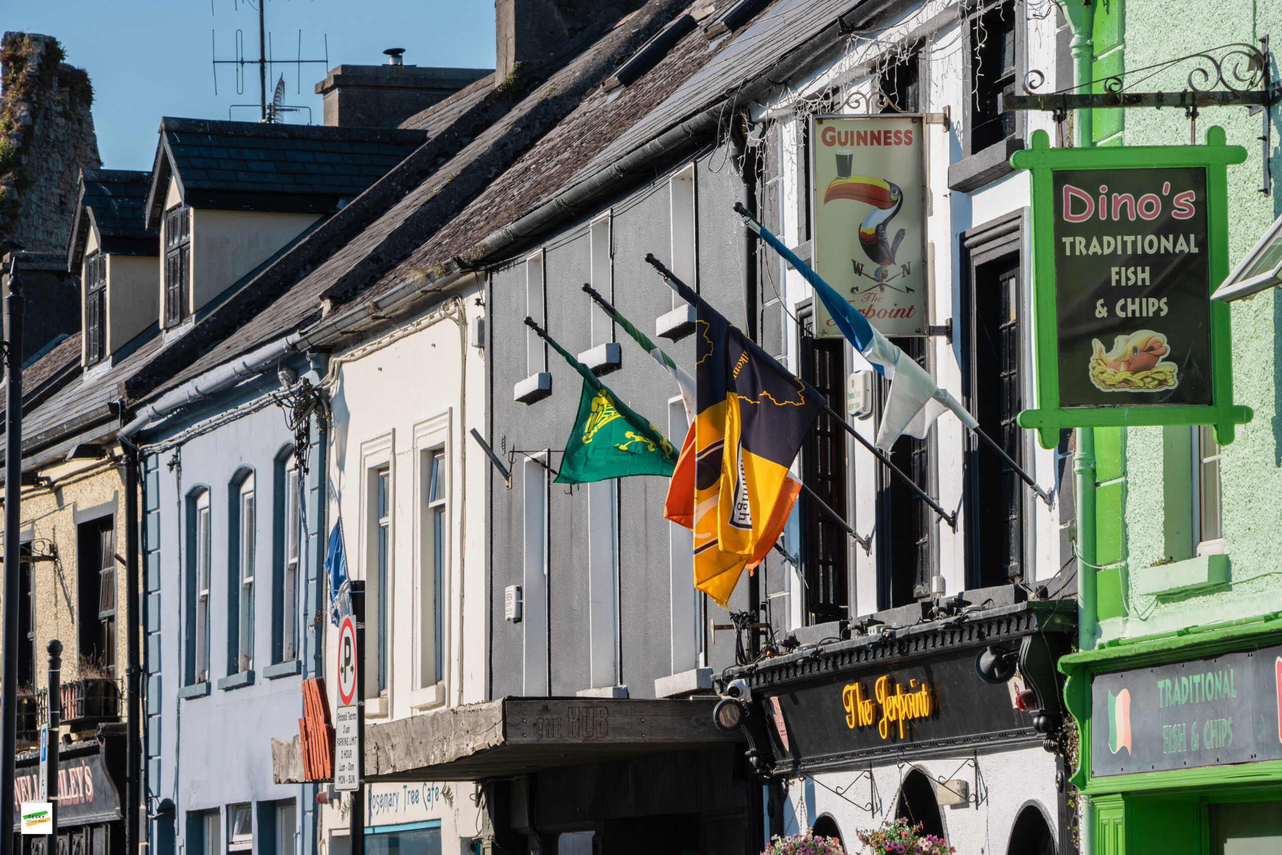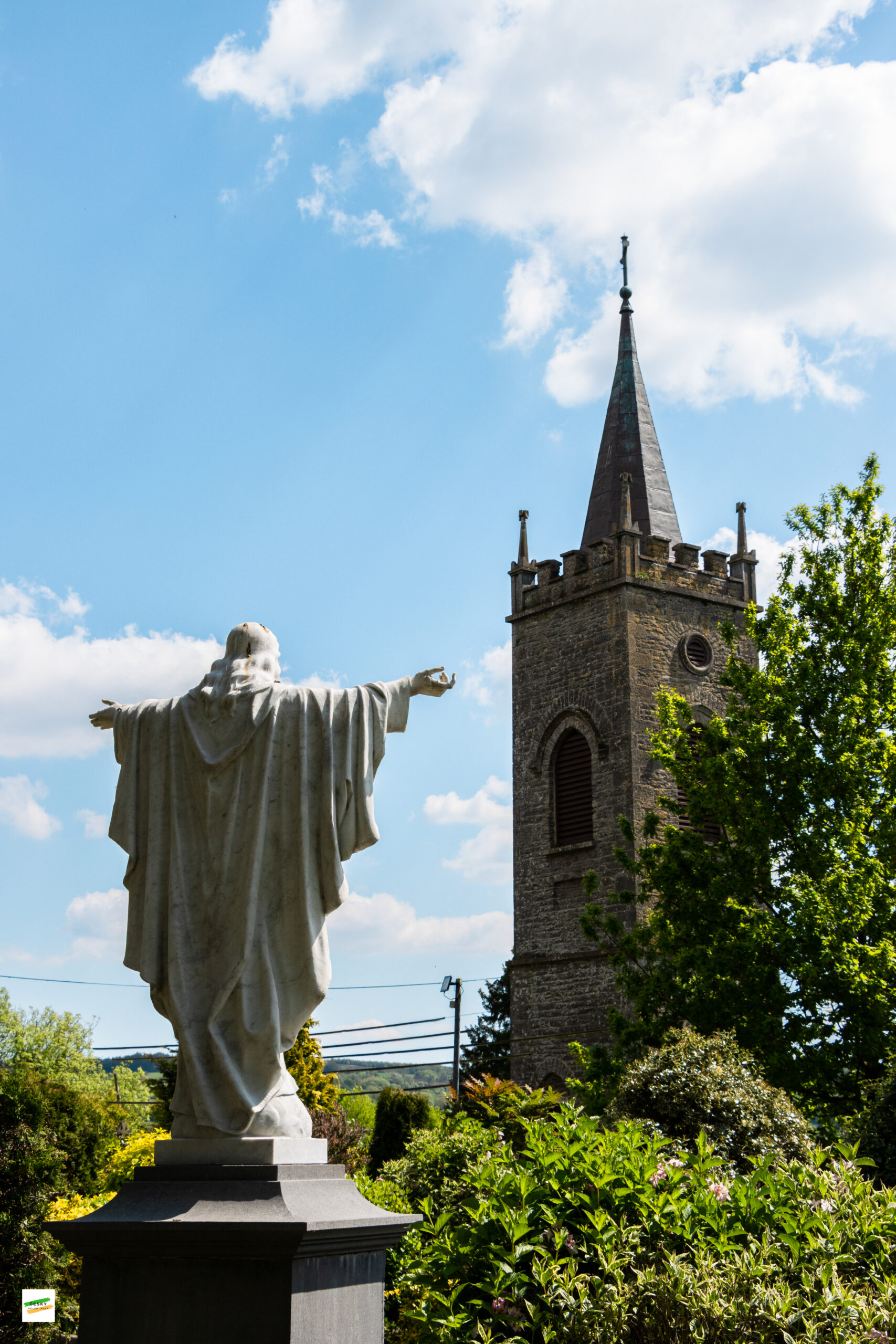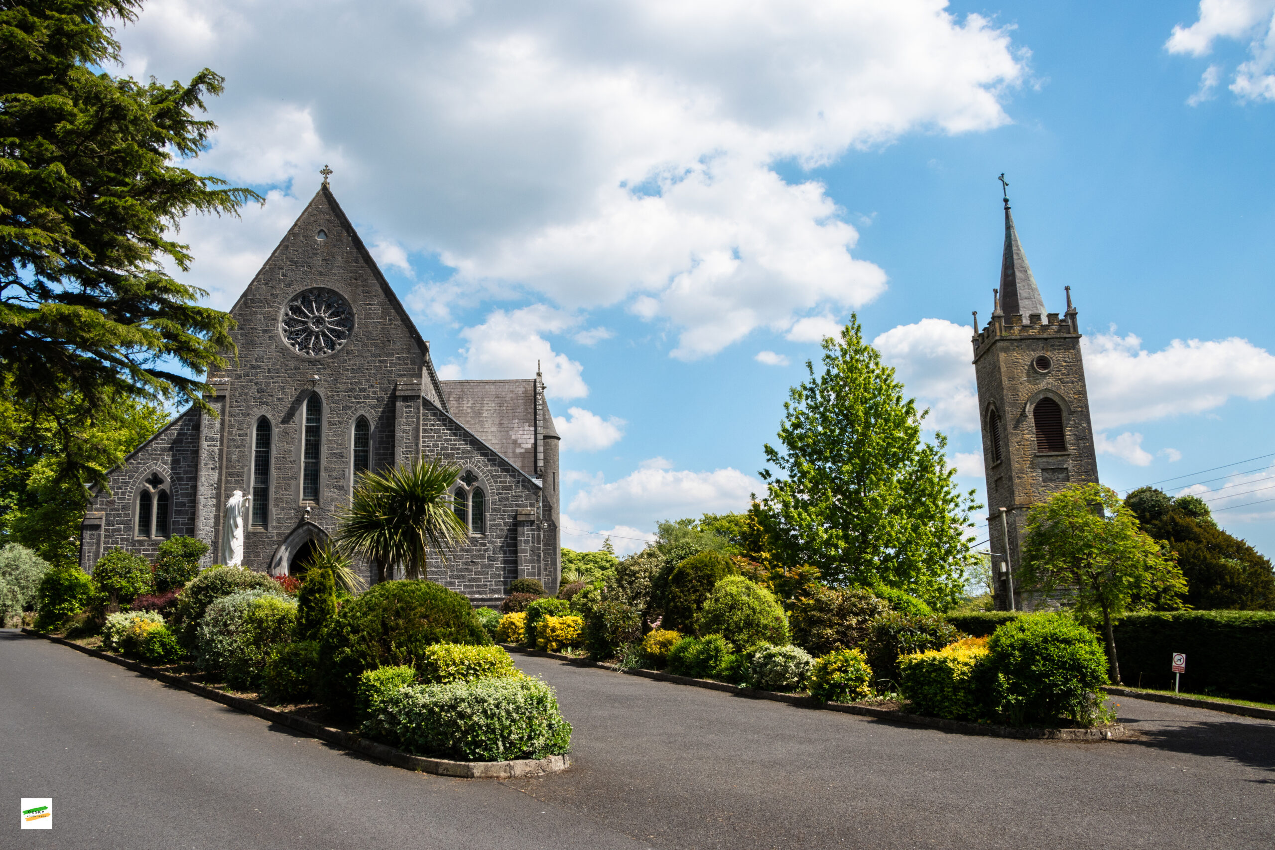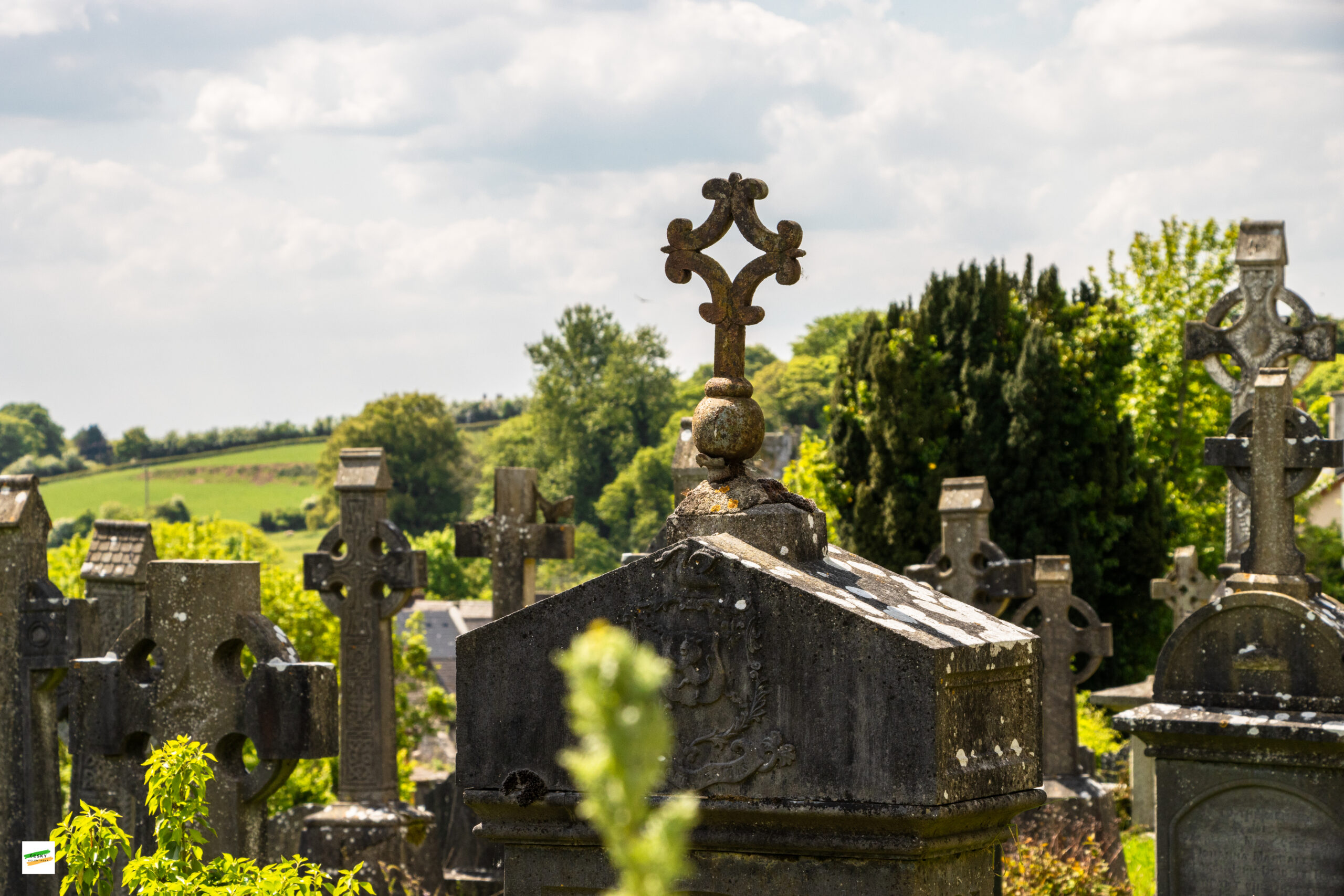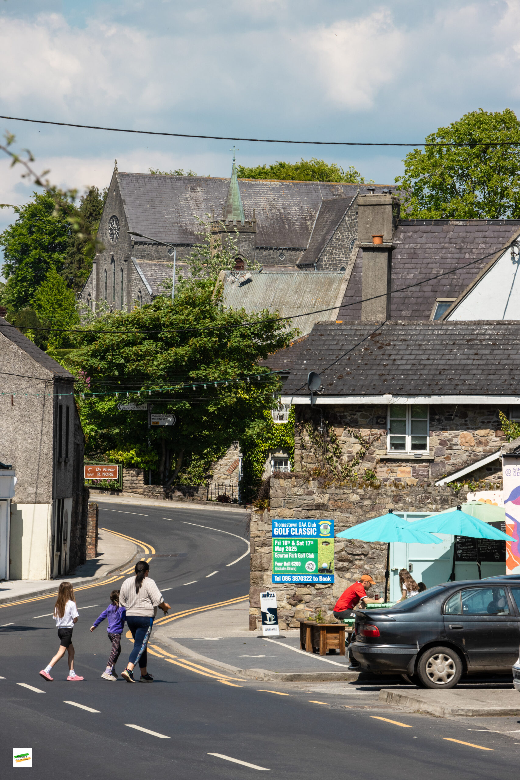 Right at the entrance to the village you can notice colorful buildings on both sides such as the Community Center or the Concert Hall. This path will take you straight to the center of Thomastown, where it is teeming with cafes and shops. At the end of the main road, behind a locked gate, is the first stop – the ruins of a church, probably. Even though this building is not open to the public, if you walk down this road to the other end and look back, it is beautifully highlighted by the shops and buildings around it. From here I headed to the Church Of The Assumption, not only because it is photogenic, but in front of it is an old tower and a cemetery with iconic Irish/Celtic crosses.