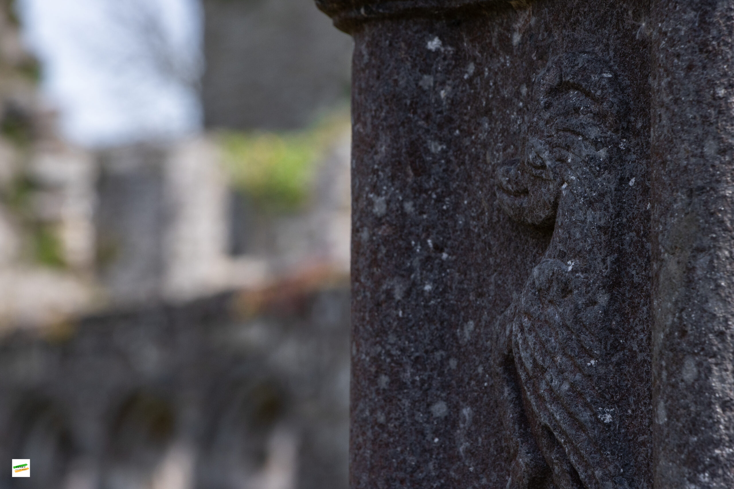 What is interesting about Jerpoint Abbey, apart from the fact that it is a very photogenic abbey, is the fact that it was dissolved in the 16th century by order of Henry VIII. Jerpoint Abbey was founded sometime in the 12th century and in the architecture itself you can see the transition from Romanesque to Gothic. In my opinion, a fairly large part of the abbey is preserved and you can see it not only in the structure, but also in the tombstones, statues and stone carvings. Another interesting thing is that during its time 36 monks lived here and the entire area was 20 thousand acres (yes, you read that right). In addition to the abbey there were workshops, mills, ponds, a brewery, a bakery, infirmaries, gardens, orchards, a guest house and a cemetery for the monks.